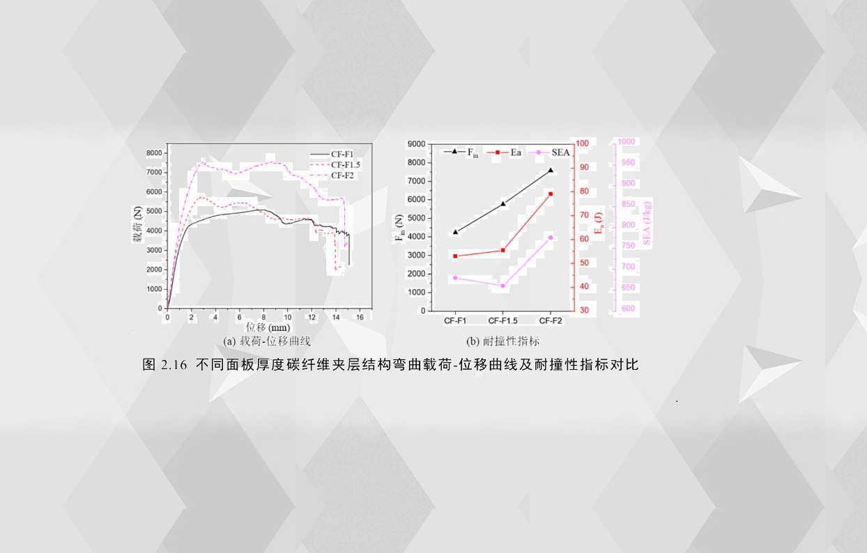2.5不同面板厚度碳纖維夾層結構彎曲耐撞性指標